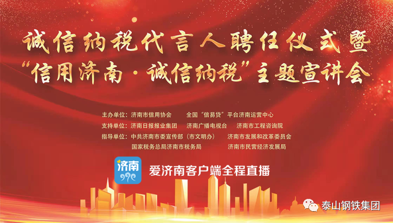 6月25日,市信用协会、全国“信易贷”平台济南运营中心联合举办诚信纳税代言人聘任仪式暨“信用济南·诚信纳税”主题宣讲会。会上,泰山钢铁集团王永胜董事长等20位企业家被聘为“我为诚信纳税代言”活动代言人。本次活动聘任的“诚信纳税代言人”是从众多社会公共信用优良、连续三年纳税信用等级为A级的民营企业负责人中遴选的,他们将作为诚信纳税典型代表,宣传诚信纳税方面的工作和知识,引导广大纳税人进一步提高税法遵从度,营造“知信、守信、用信”的社会氛围,擦亮信用济南名片,建设全国文明典范城市。编辑:李文树