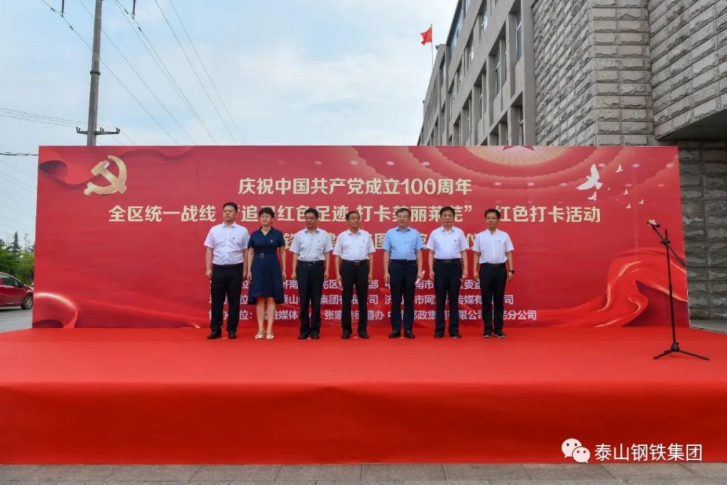 7月23日,庆祝中国共产党成立100周年全区统一战线“追寻红色足迹,打卡魅力莱芜”红色打卡活动暨泰山钢铁党建有声图书馆启动仪式在集团举行。莱芜区委统战部、宣传部等政府部门领导出席活动。作为承办单位之一,董事长、党委书记、总裁王永胜在会上致欢迎辞,为泰山钢铁党建有声图书馆揭幕。