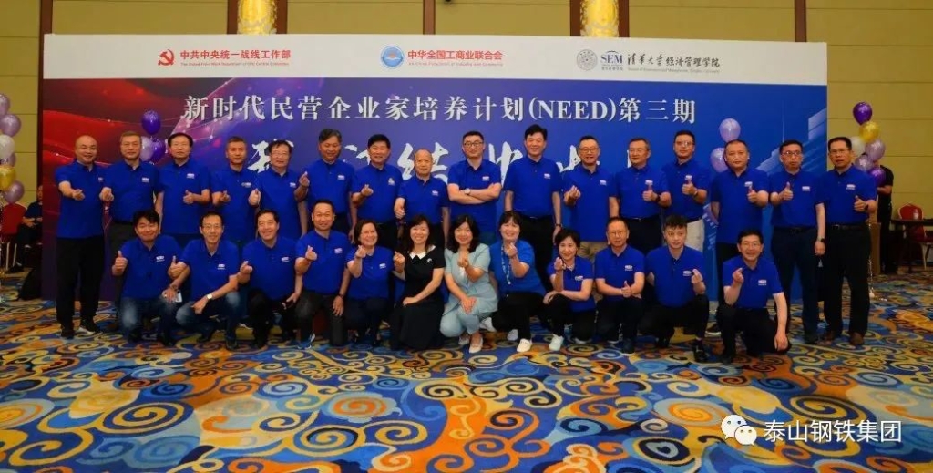 7月30日——8月1日,新时代民营企业家培养计划(NEED)第三期学员们赴北京参加培训学习。根据培训安排,他们将在这里完成全部的培训课程学习。在7月31日的新时代民营企业家培养计划(NEED)第三期结业座谈会上,中央统战部副部长,全国工商联党组书记、常务副主席徐乐江,清华大学副校长郑力出席座谈会并讲话。中央统战部非公经济工作局、全国工商联宣教部有关负责同志,清华经管学院院长白重恩,党委书记兼副院长陈煜波,副院长李纪珍等出席座谈会。泰山钢铁集团党委书记、董事长王永胜等“新时代民营企业家培养计划”第三期学员们参加座谈会。会上,围绕“民营企业转型升级,实现高质量发展”这一主题,11名学员先后发言,分享了学习历程和收获。新时代民营企业家培养计划(NEED)第三期结业仪式