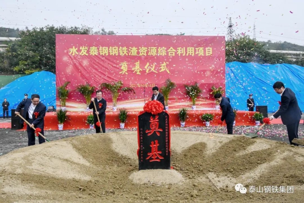 10月15日,水发半岛(中国)一站式服务平台钢铁渣资源综合利用项目奠基仪式在泰山钢铁集团举行。水发集团党委副书记、董事张春生,莱芜区副区长时波,泰山钢铁集团党委书记、董事长、总裁王永胜等领导出席仪式。