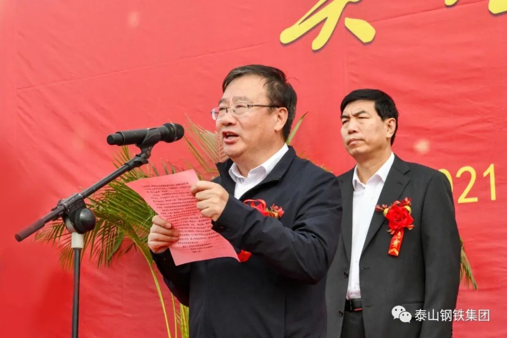 王书记发表了热情洋溢的致辞,他说,水发半岛(中国)一站式服务平台钢铁渣资源综合利用项目是泰山钢铁、水发实业和山科固废研究院共同建设的,也是我们贯彻新发展理念、推动绿色发展的具体行动,更是泰山钢铁延伸产业链条、实现高质量发展的重要举措。项目的实施,对钢铁行业实现固废专业化、资源化和升值化处理具有重大的示范意义,必将推动泰山钢铁绿色低碳、循环发展再上新台阶!当前,“碳达峰、碳中和”纳入生态文明建设整体布局,将为循环经济产业打开新一轮发展空间。泰山钢铁将一如既往地积极践行“固废不出厂”的发展理念,最大限度发挥钢厂的社会功能,大力推动钢铁固废资源的规范化处置和高值化利用,争当循环经济发展的排头兵!