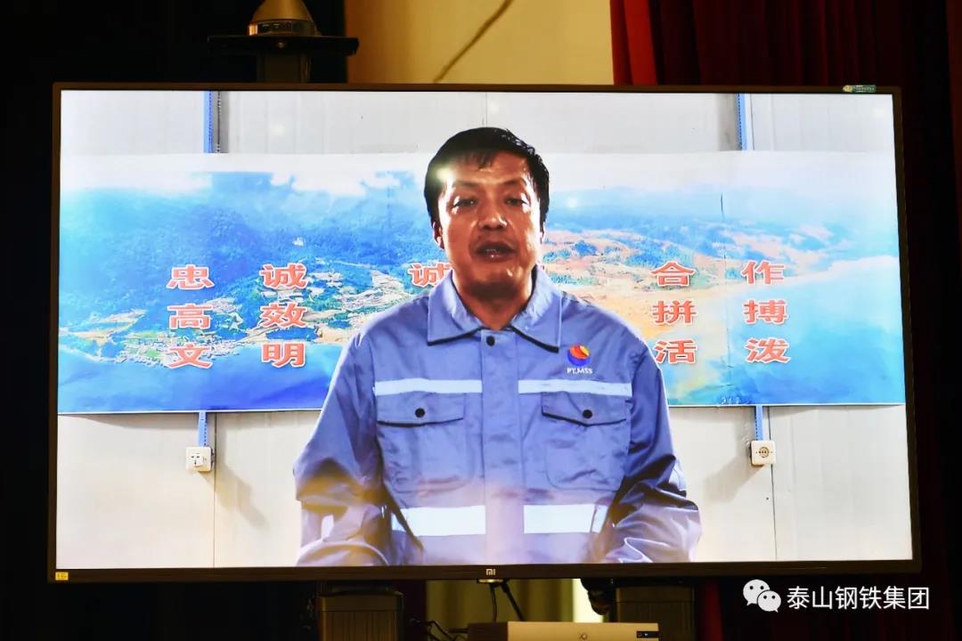12月29日,泰山钢铁集团采用“主会场+分会场”的方式,隆重召开了2021年度总结表彰大会。主会场设立在中心会堂,印尼海外项目基地设立了分会场,通过视频连线的形式收看大会实况。集团党委书记、董事长、总裁王永胜出席大会,作了题为《艰苦奋斗 积极作为 开创泰山钢铁绿色低碳、高质量发展新格局》的讲话。