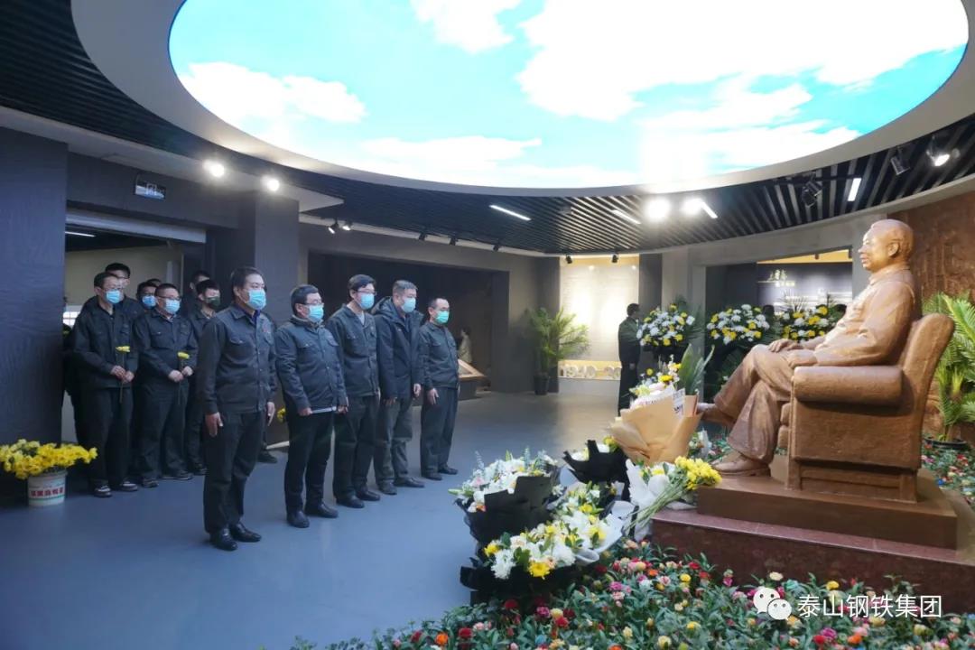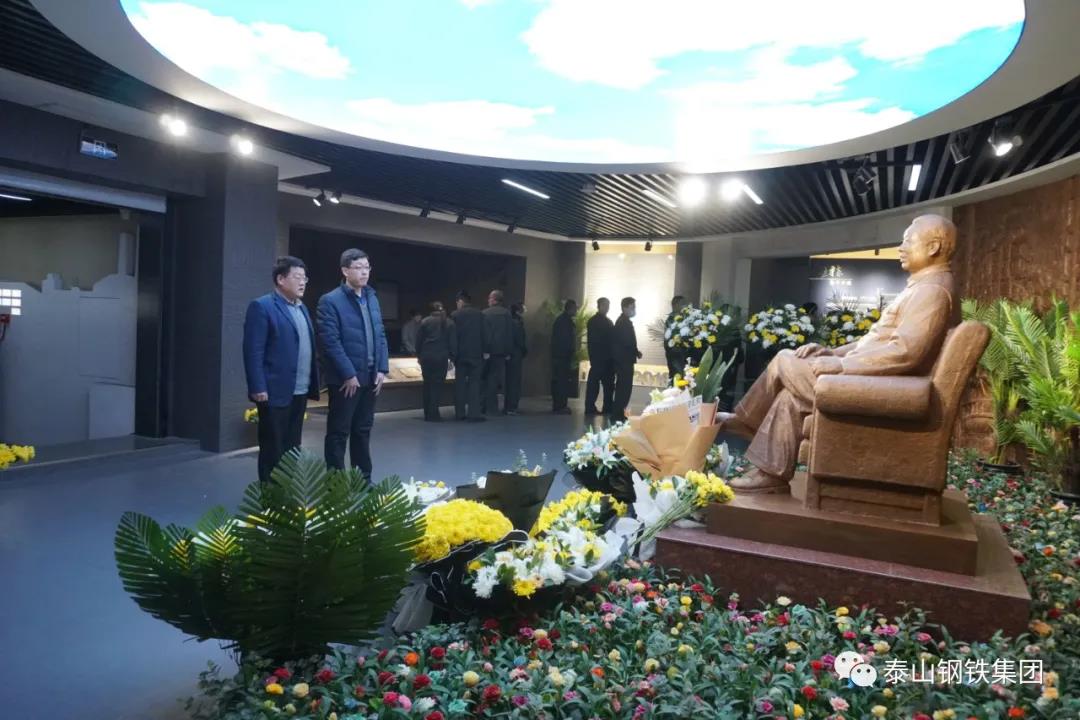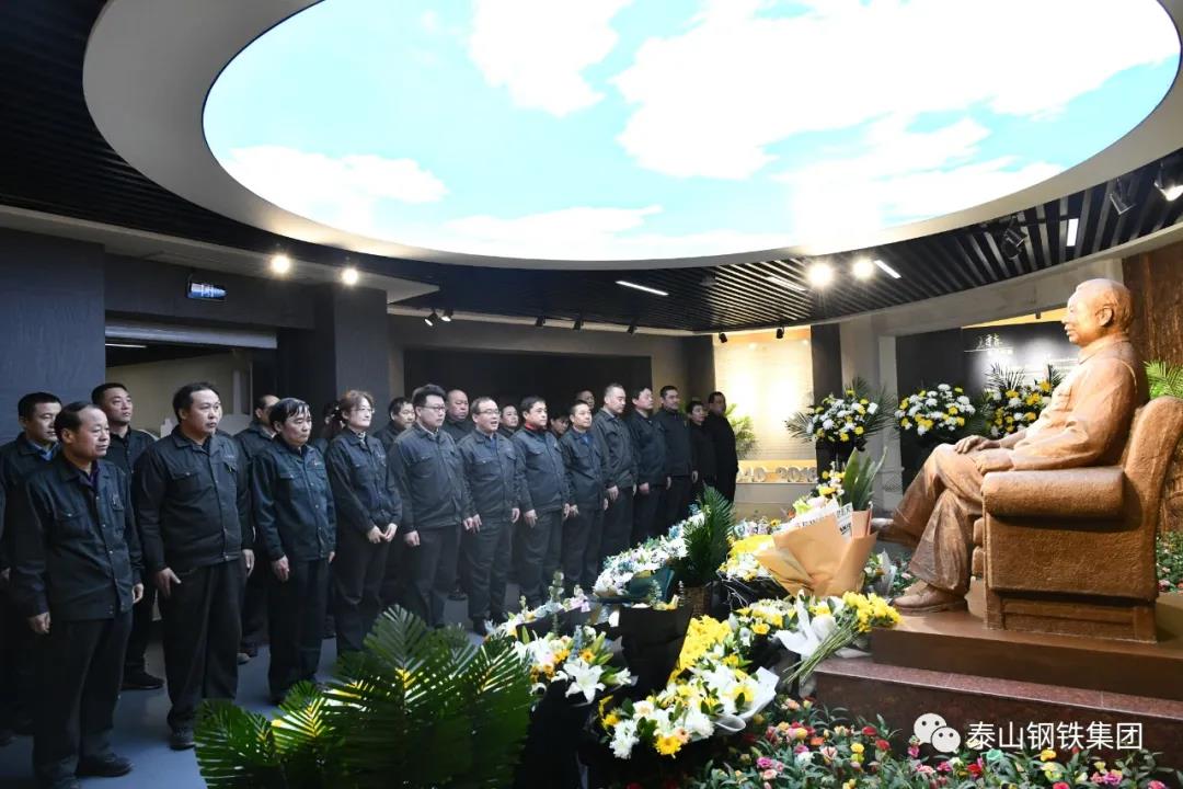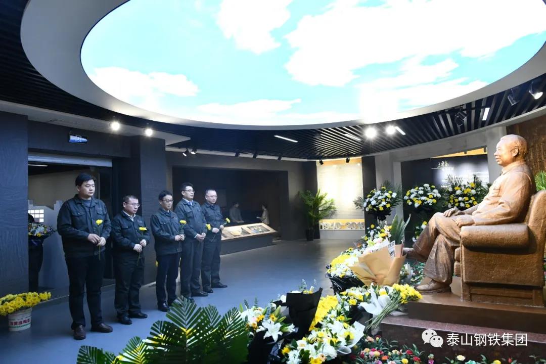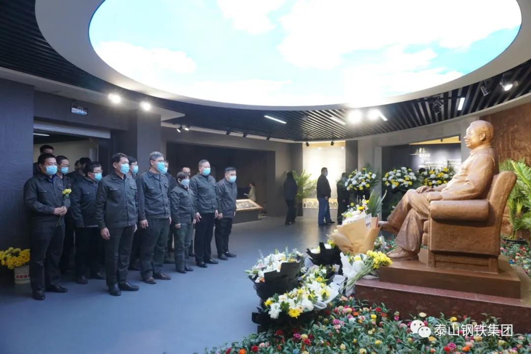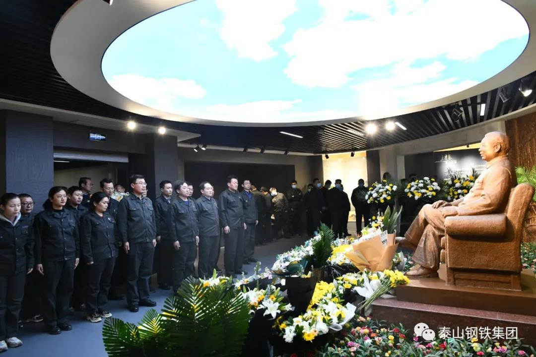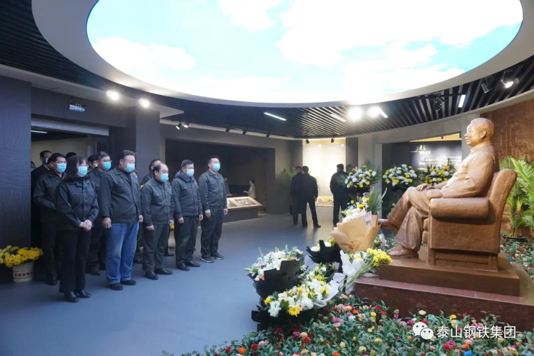 2022年1月1日上午9时,泰山钢铁集团党委书记、董事长、总裁王永胜带领在家公司领导一起拾级而上,缓步走进庄严肃穆的老书记纪念馆,向老书记雕像敬献鲜花。鲜艳挺拔的花烛、芬芳吐蕊的百合、轻盈绽放的文心兰,寄托着对已故老书记王守东同志的深切缅怀和崇高敬意。