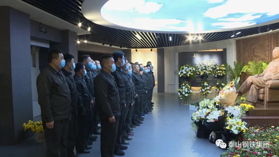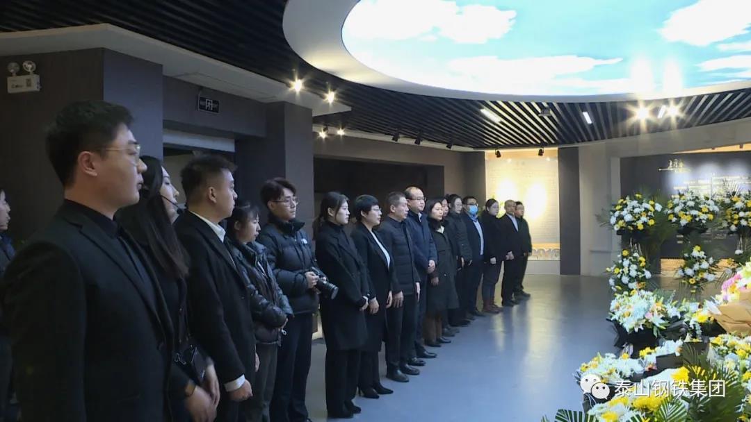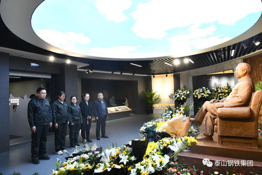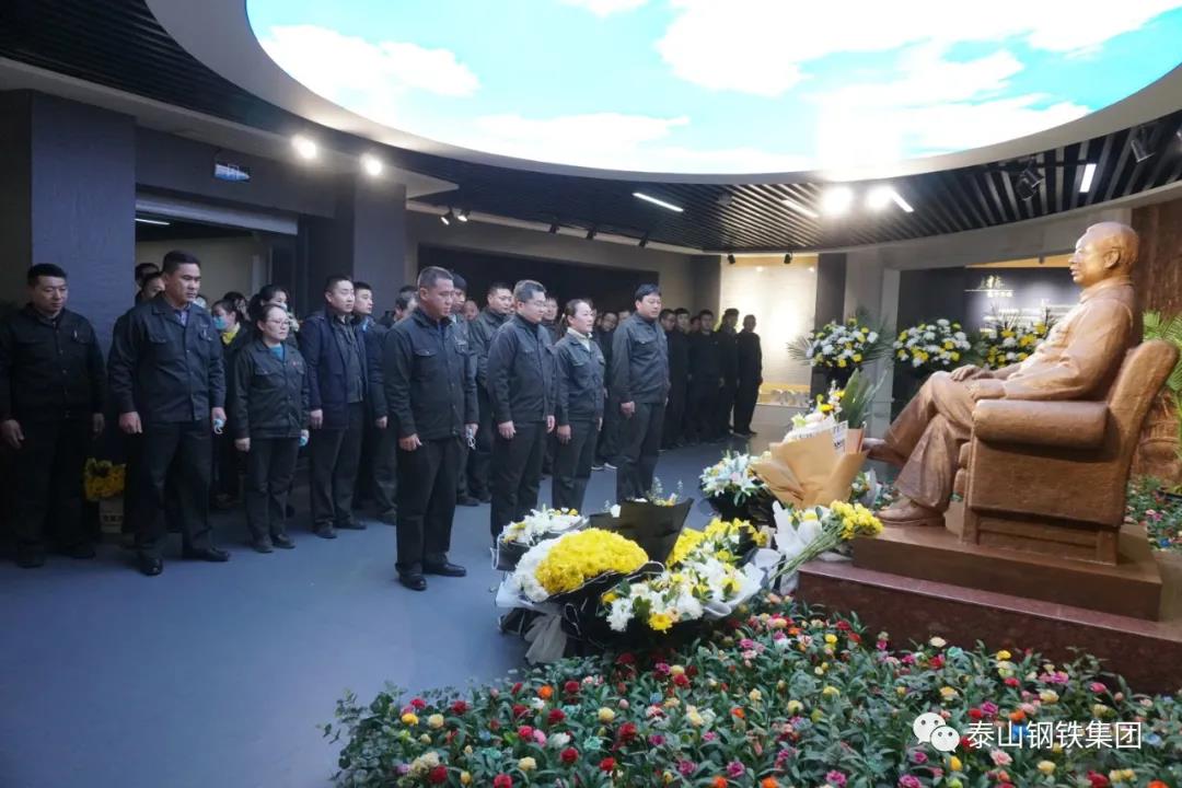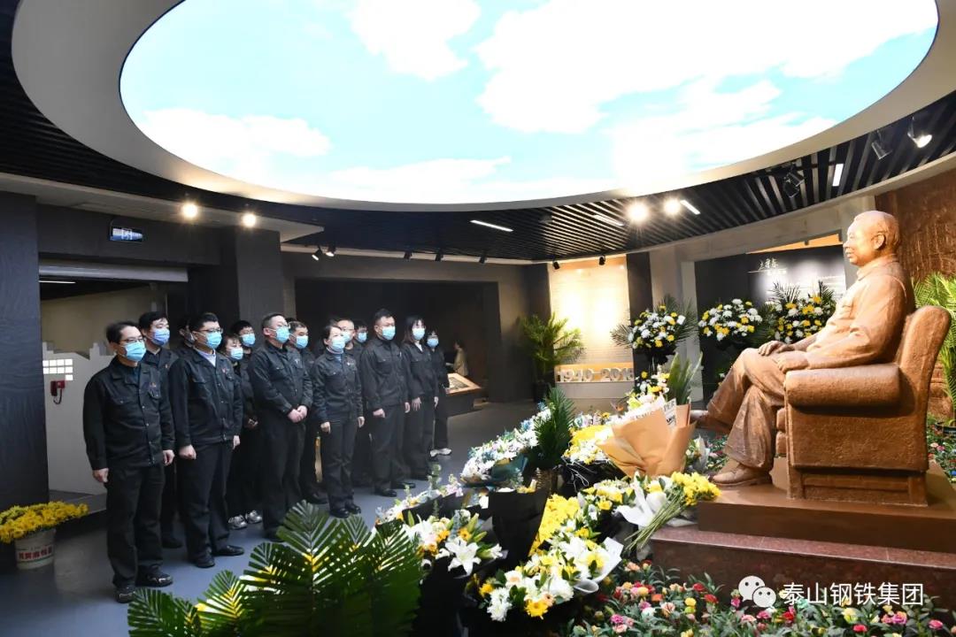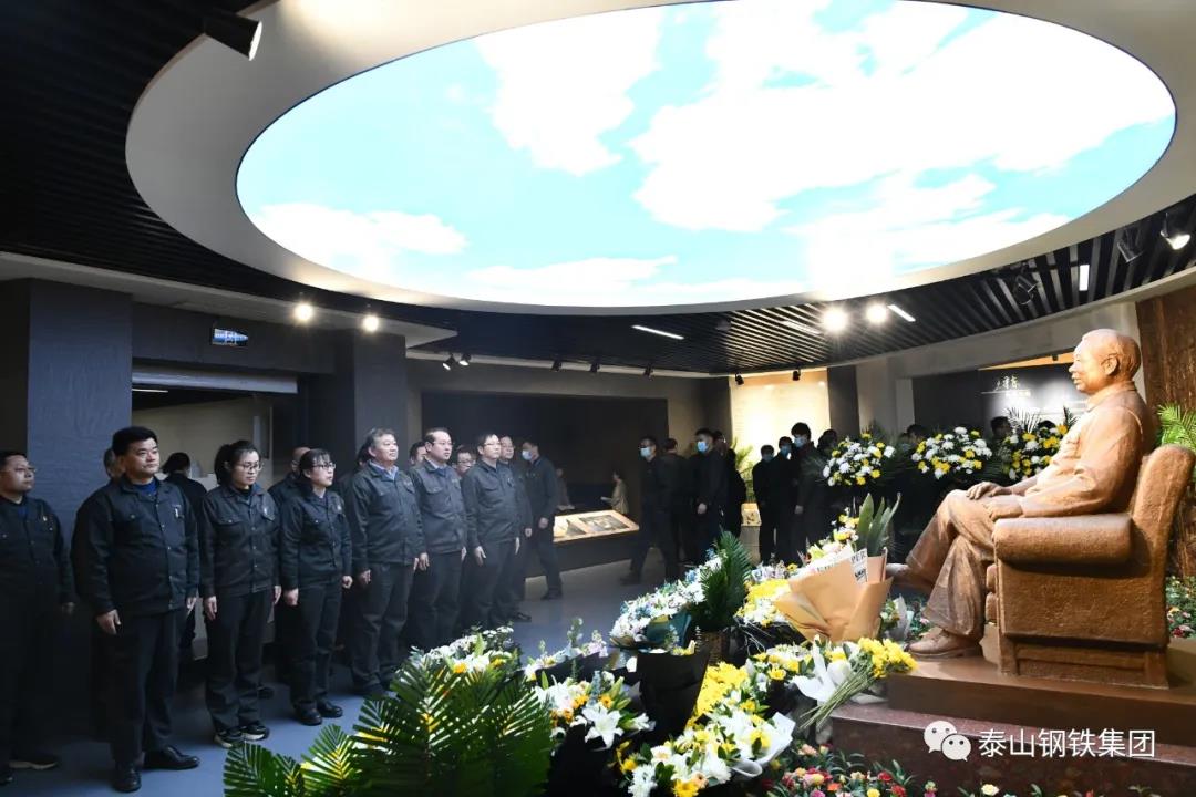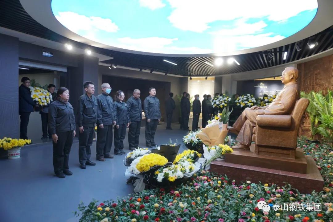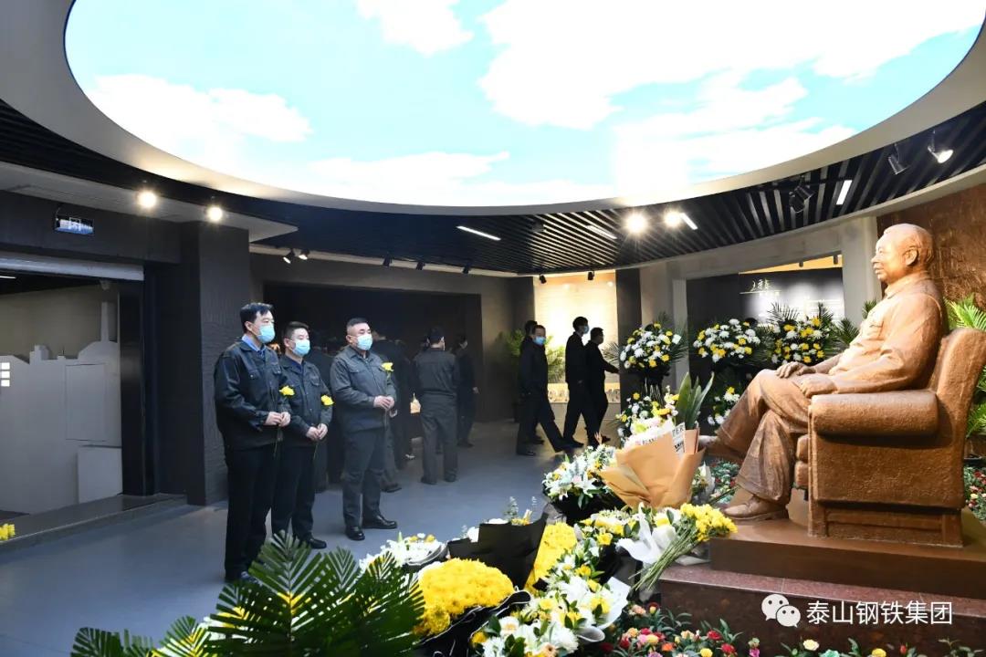 2022年1月1日上午9时,泰山钢铁集团党委书记、董事长、总裁王永胜带领在家公司领导一起拾级而上,缓步走进庄严肃穆的老书记纪念馆,向老书记雕像敬献鲜花。鲜艳挺拔的花烛、芬芳吐蕊的百合、轻盈绽放的文心兰,寄托着对已故老书记王守东同志的深切缅怀和崇高敬意。
