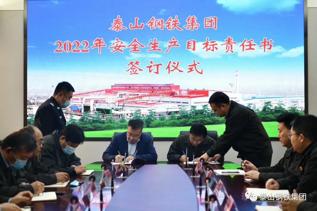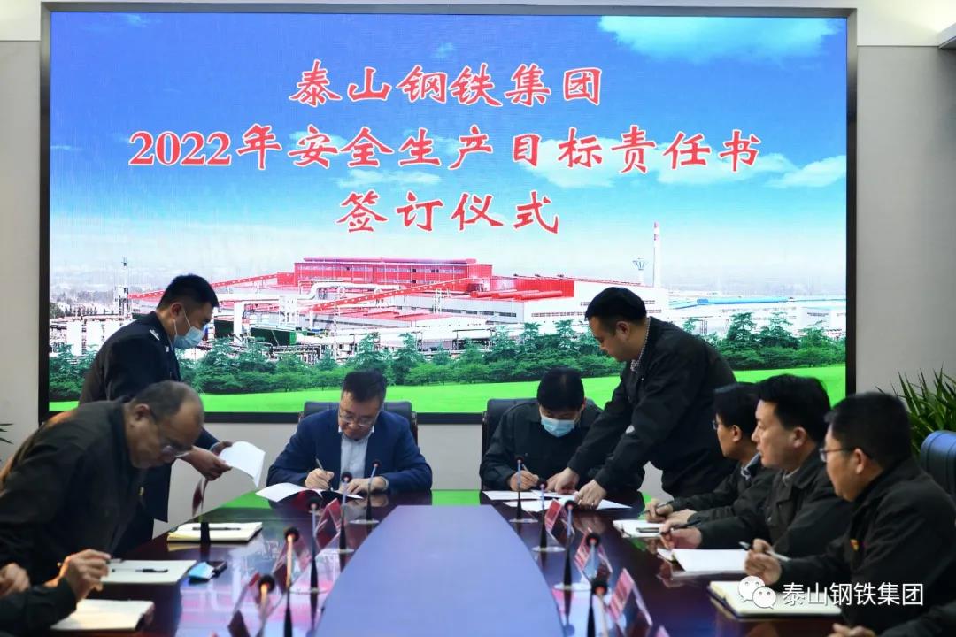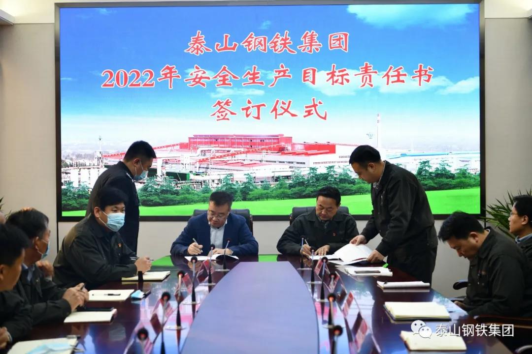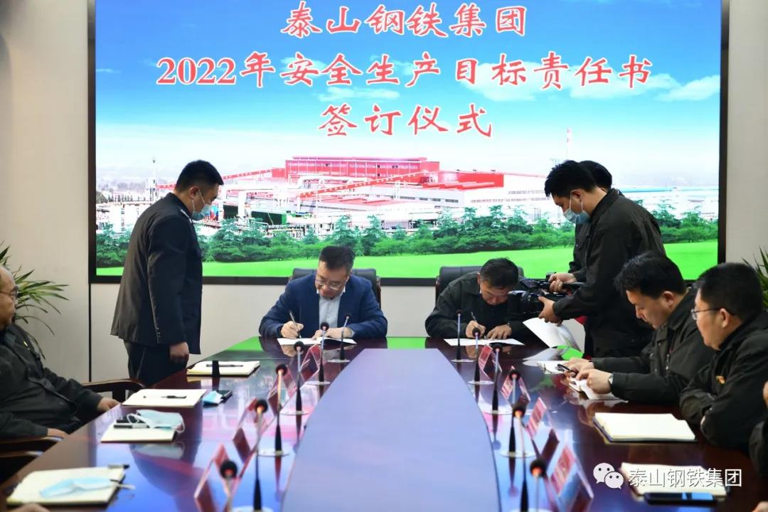 安全生产责任重于泰山。进入2022年第一个工作日,泰山钢铁集团在办公楼会议室召开了2022年安全生产目标责任书签订仪式,集团党委书记、董事长、总裁王永胜出席会议,与各事业部、各分厂签订了2022年度安全生产目标责任书、社会治安综合治理目标责任书、消防安全目标责任书,对2022年安全工作提出了要求,给大家上了一堂生动的“2022年安全生产第一课”。