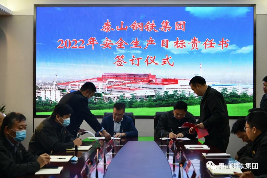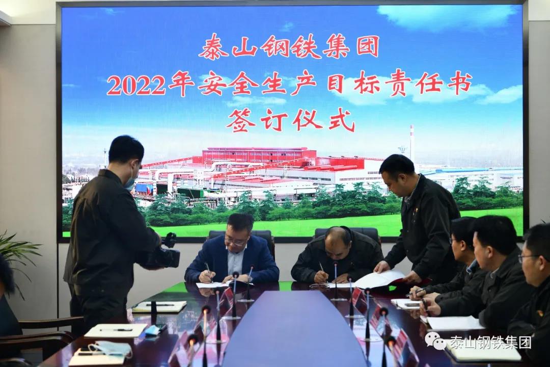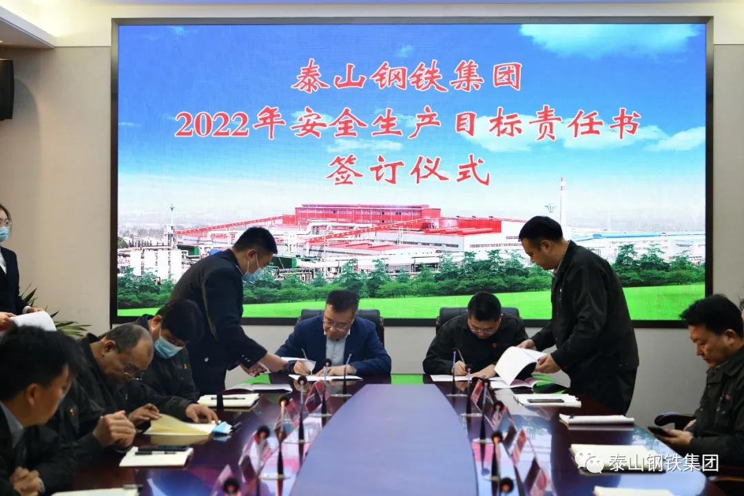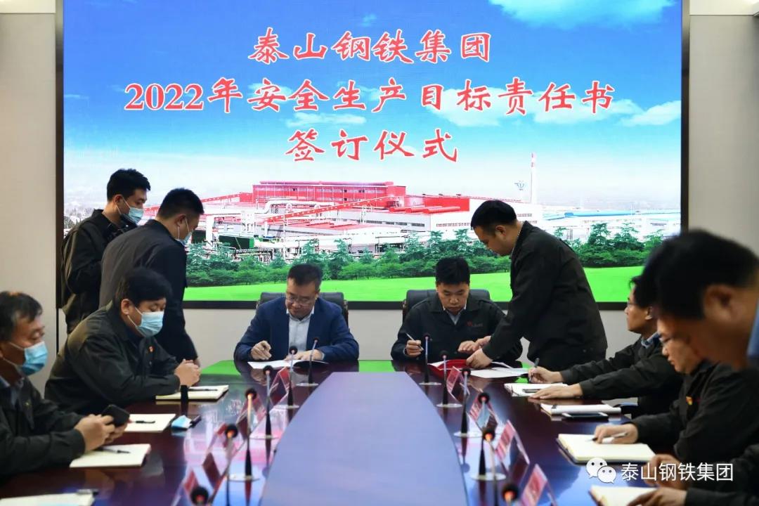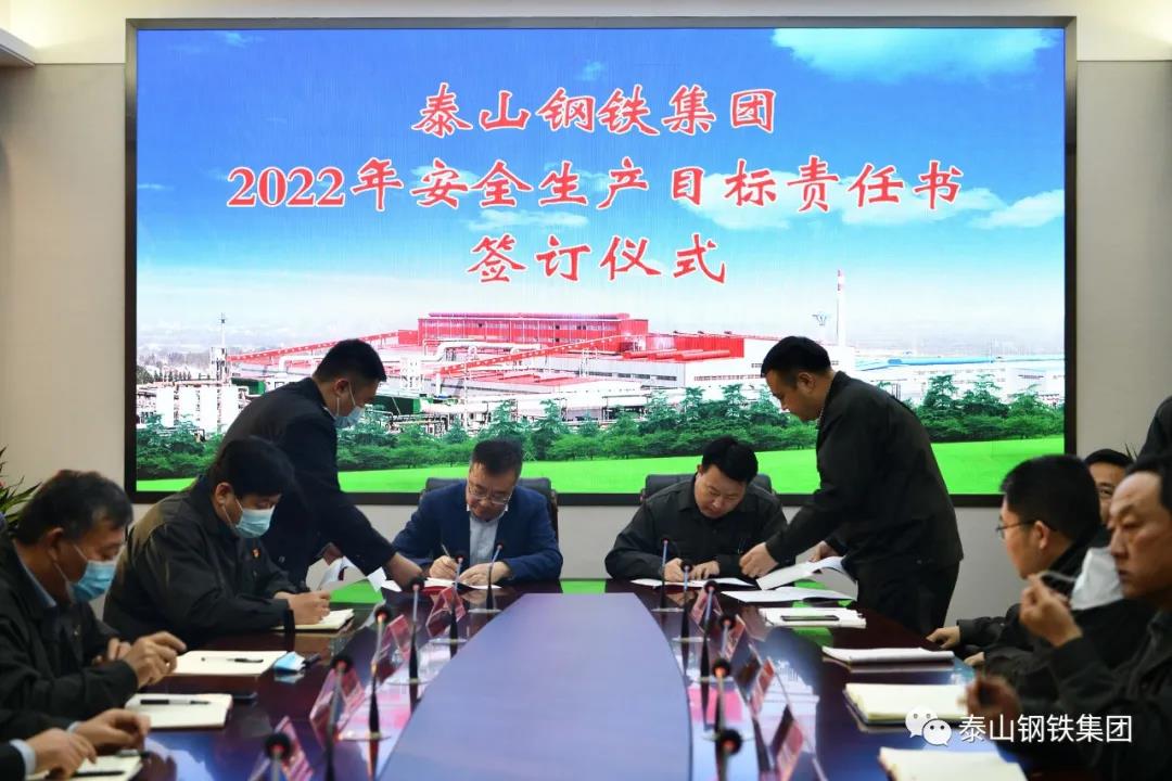 安全生产责任重于泰山。进入2022年第一个工作日,泰山钢铁集团在办公楼会议室召开了2022年安全生产目标责任书签订仪式,集团党委书记、董事长、总裁王永胜出席会议,与各事业部、各分厂签订了2022年度安全生产目标责任书、社会治安综合治理目标责任书、消防安全目标责任书,对2022年安全工作提出了要求,给大家上了一堂生动的“2022年安全生产第一课”。