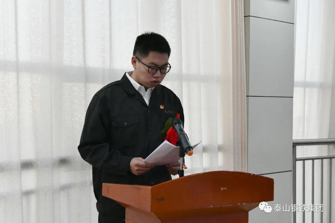 冷轧部党支部书记谷延红、炼铁部高炉工长杨立春、建工机械集团焊工班长吴明峰、不锈钢事业部TSR乙班职工杨震作汇报发言。