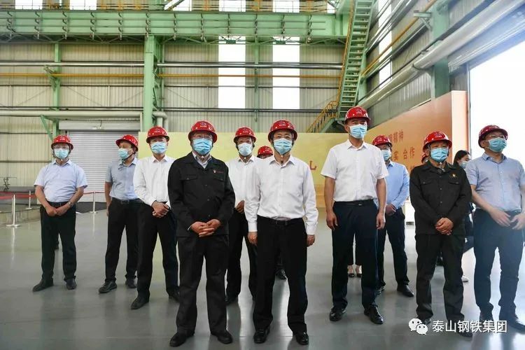 5月21日,济南市委副书记、市长于海田一行在济南市莱芜区委书记、莱芜高新区党工委书记焦卫星的陪同下,来泰山钢铁集团调研企业发展情况。在泰嘉不锈钢冷轧板材深加工项目现场,集团董事长、党委书记王永胜介绍了企业的生产经营和不锈钢产业链发展的相关情况。