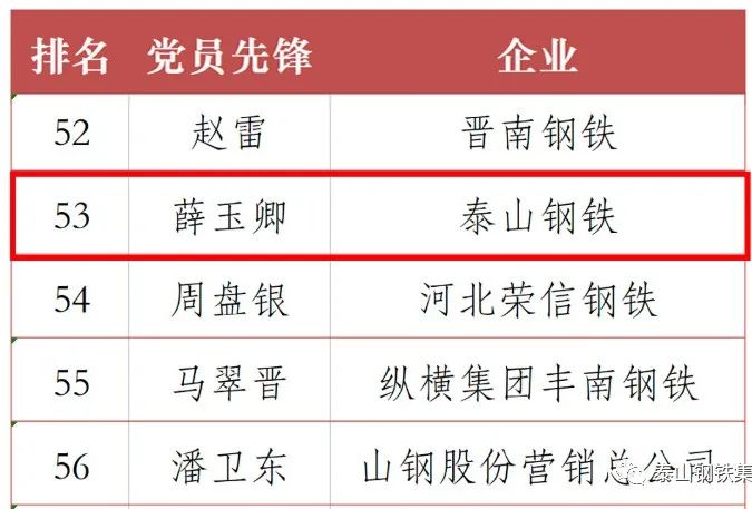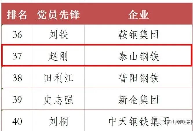 七一之际,中国冶金报社联合中国冶金职工思想政治工作研究会举办了首届钢铁行业“党员先锋”评选活动,来自钢铁行业上下游各企事业单位、科研院所的198名党员参与活动。近日,钢铁行业“党员先锋”名单公布,泰山钢铁集团不锈钢事业部党支部书记赵刚、炼铁部炼铁厂总工程师薛玉卿光荣上榜。
