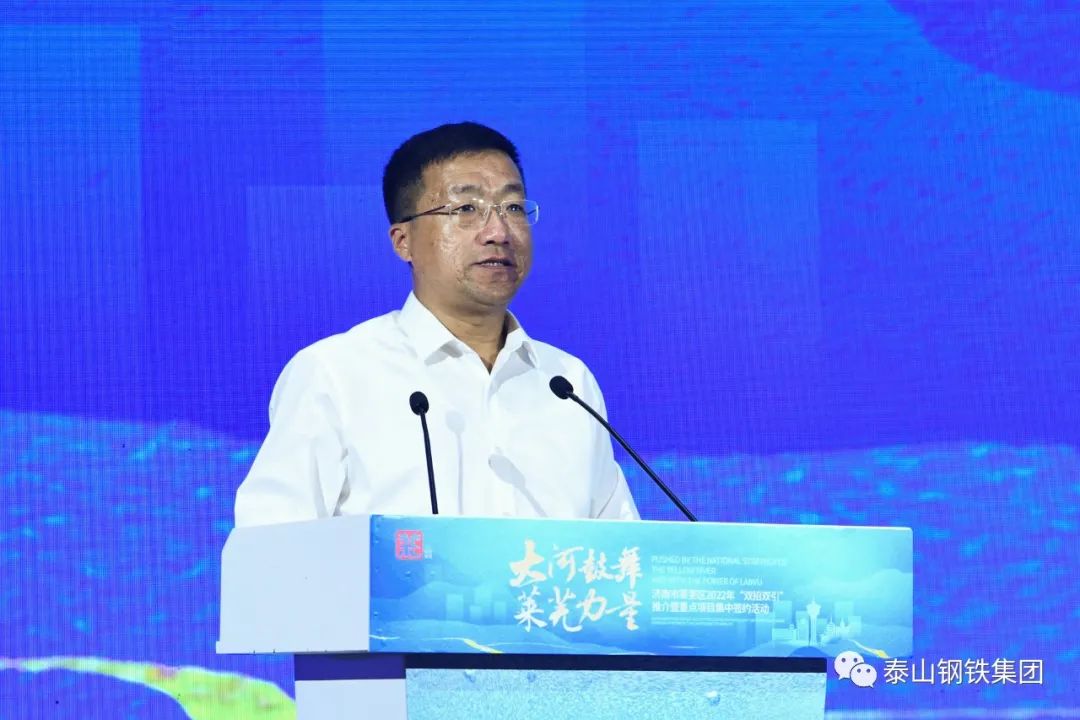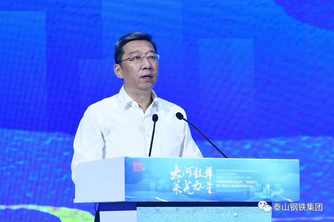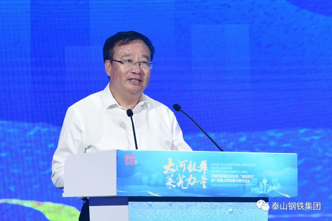 7月28日,莱芜区招商引资工作会暨“双招双引”项目集中签约仪式隆重举行。市委常委、副市长孙斌,区委书记焦卫星,区委副书记、区长李光辉,区委副书记于炳基等政府领导,市、区政府相关职能部门,以及地方重点企业、招商引资企业、商协会、金融机构的有关负责同志,齐聚希尔顿欢朋酒店,支招莱芜经济发展建设。泰山钢铁集团党委书记、董事长王永胜参加会议并作为企业代表上台发言。集团党委成员、总经理邵书东在会上代表泰山钢铁集团签约不锈钢产业园(创新园)项目。