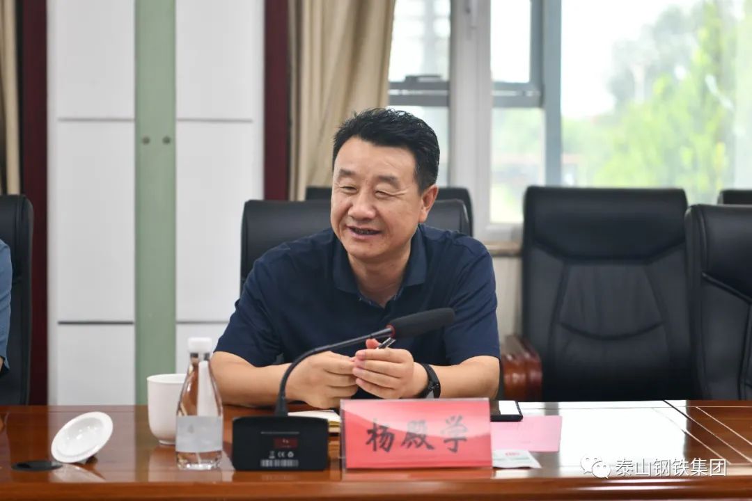 8月13日上午,济南市民营经济发展局党组书记孟学峰一行到泰山钢铁集团调研。在集团经贸楼会议室,董事长、党委书记王永胜汇报了集团近期的生产经营情况。