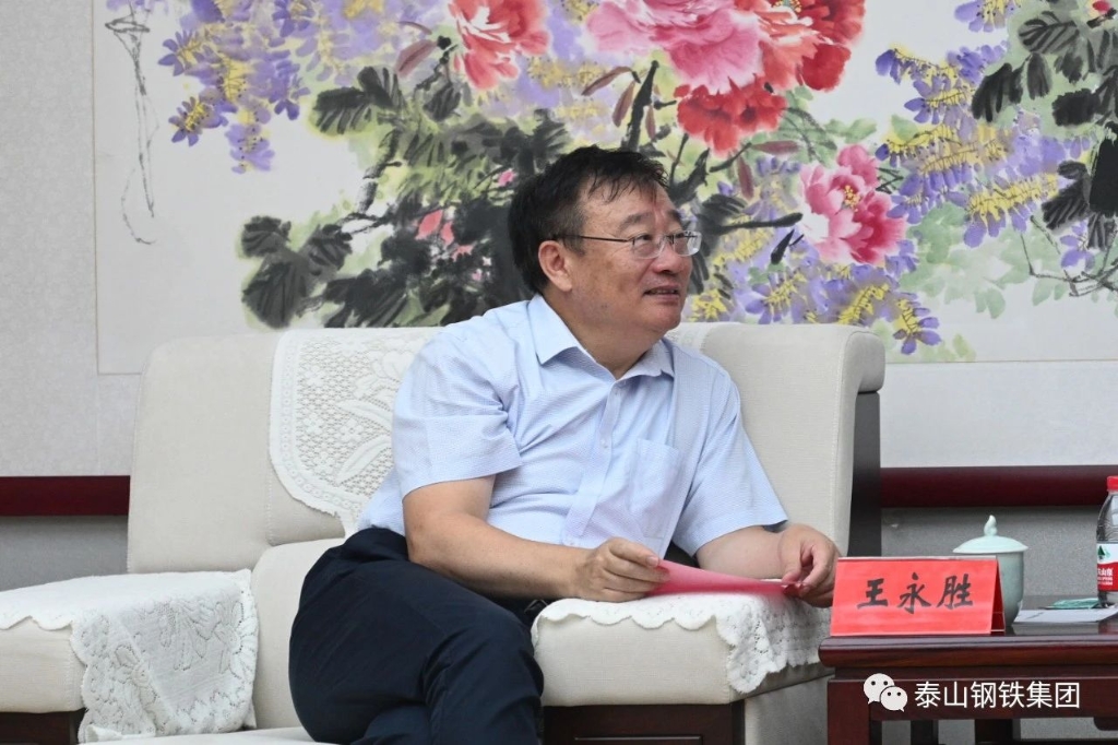 8月22日,中国第一重型机械股份公司党委副书记、副总经理,一重集团大连工程技术有限公司党委书记、董事长祁文革一行来泰山钢铁集团交流。集团党委书记、董事长王永胜在山前办公楼二楼贵宾室热情接待客人并座谈交流。